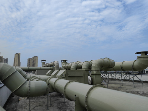 實驗設計室有機廢氣治理 → 活性酶類炭過濾程序器 → 引軸流式風機 → 排放標準